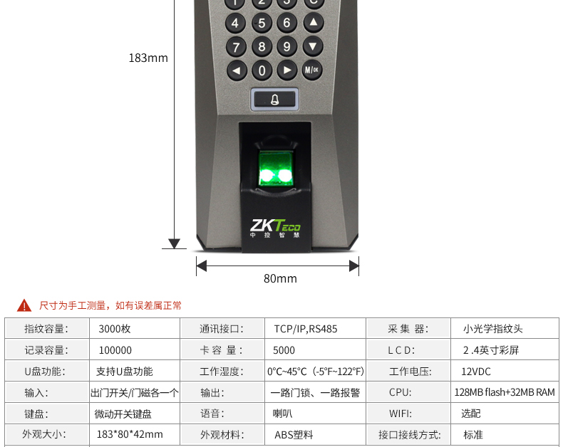 • ZKTeco/熵基F18指紋門禁考勤一體機
