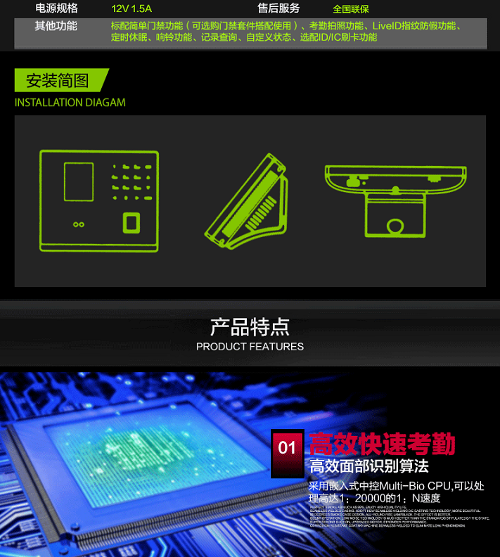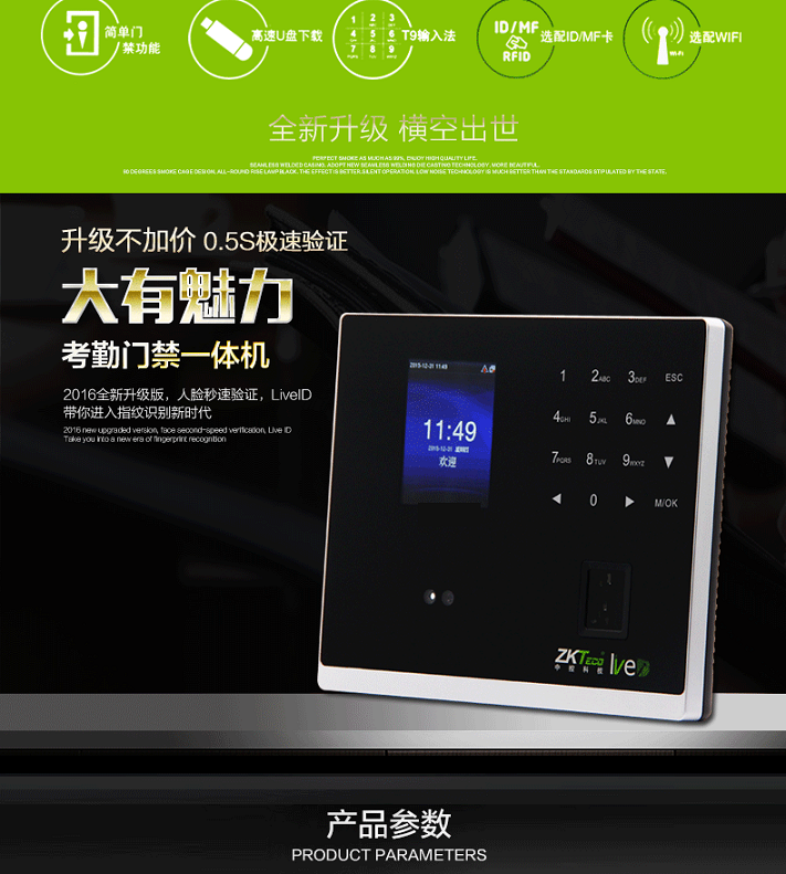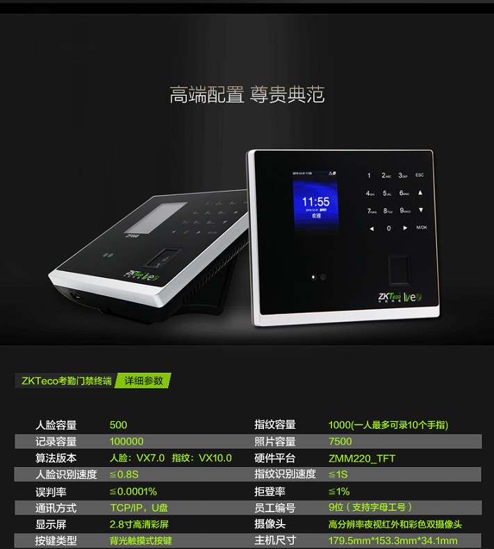 • ZKTeco熵基FT3000人臉指紋門禁一體機